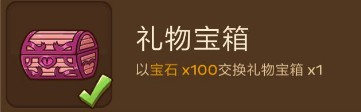 礼物宝箱:礼物宝箱是所有宝箱中花费宝石最少的箱子,能够开出礼物,当然要比木头宝箱的量多一些。